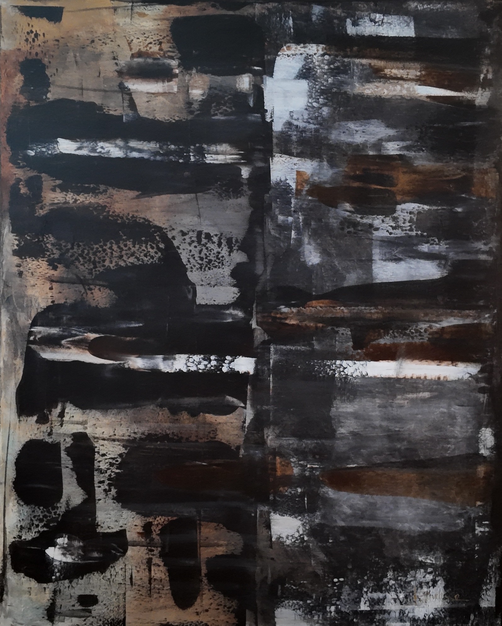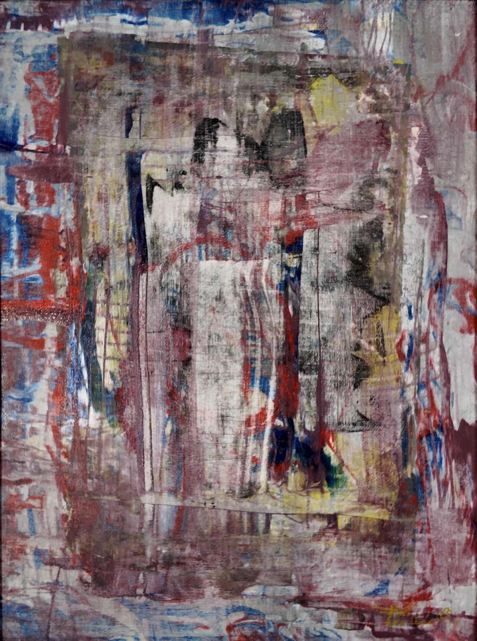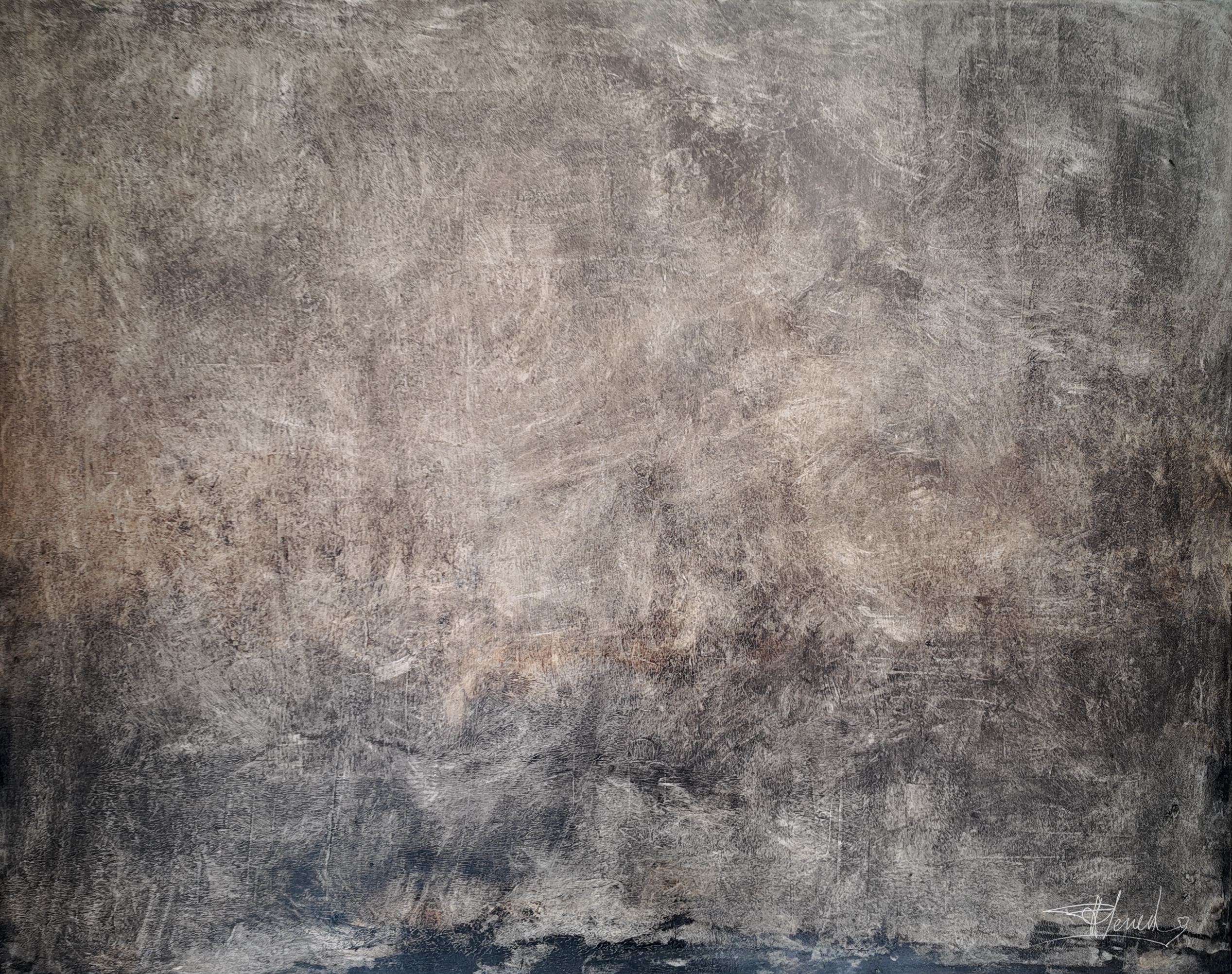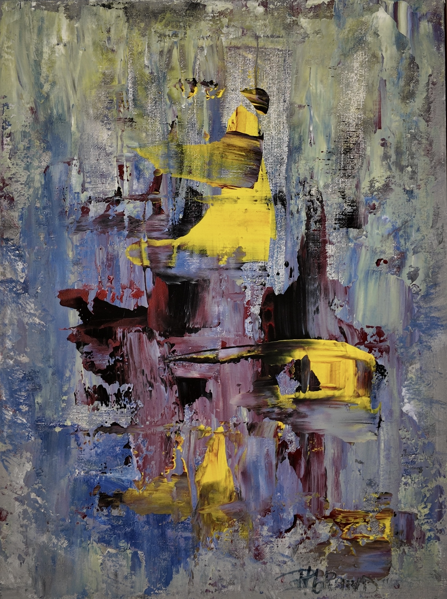 À la frontière mouvante entre l’ordre et l’éclatement, cette œuvre explore les tensions intimes du monde intérieur. Les noirs profonds s’enlacent aux éclats rouges comme des pensées qui s’entrechoquent, tandis que le bleu clair tente une percée, fragile mais tenace. Chaque coup de pinceau semble hésiter entre la retenue et l’abandon, c est comme capturé l’instant précis où le chaos devient langage. C’est une cartographie émotionnelle, un paysage abstrait où l’œil se perd et se retrouve, au gré des textures et des silences.