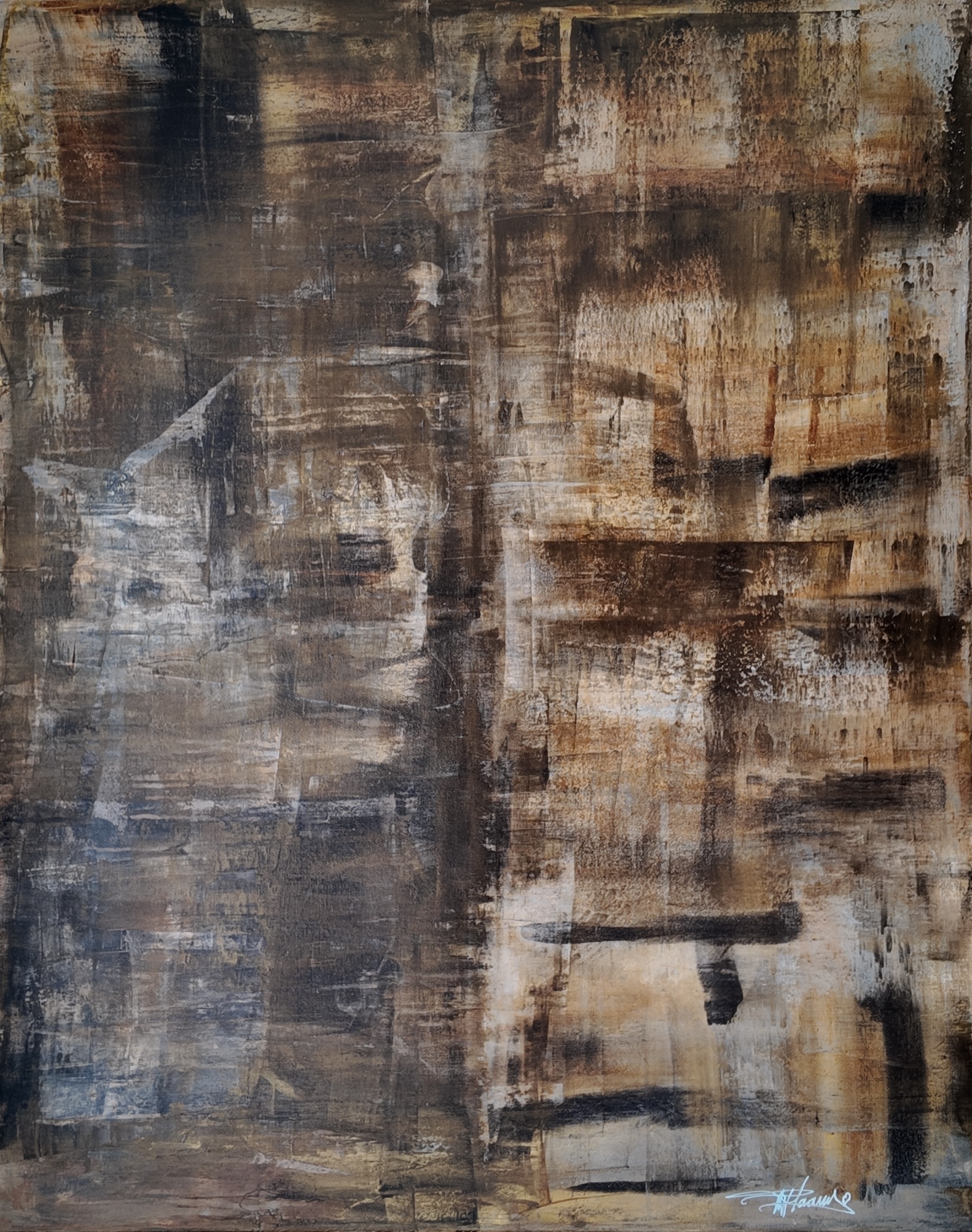 Futur une œuvre d'art abstrait qui vous invite à explorer les horizons infinis de l'imagination. Cette pièce, présentée dans des tons chauds et terreux, évoque une sensation de profondeur et de mystère, comme si elle était une fenêtre ouverte sur un monde inconnu.