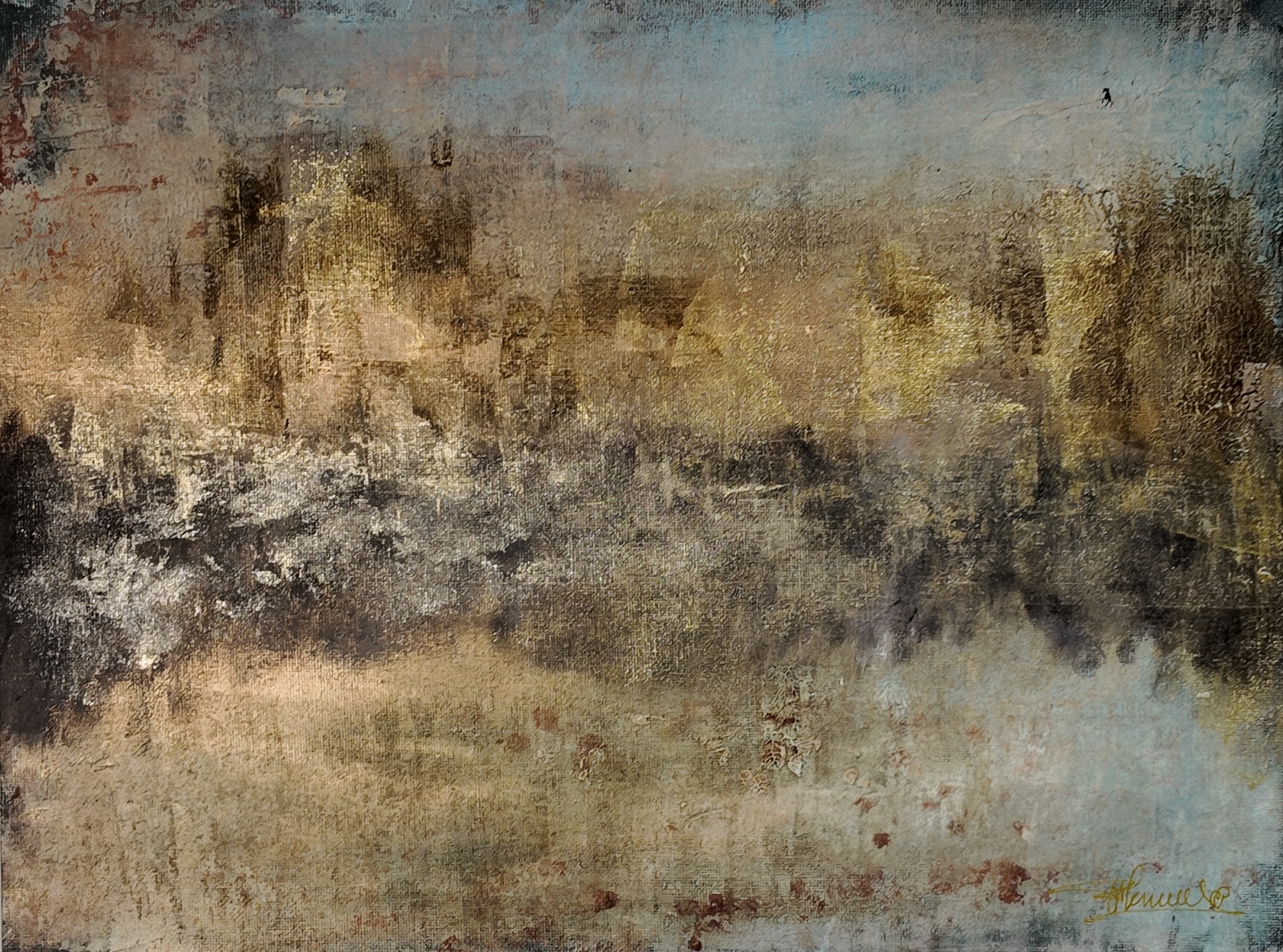 Dans cette œuvre d'art abstraite intitulée "Hayden", plongeons dans les vastes plaines des États-Unis.